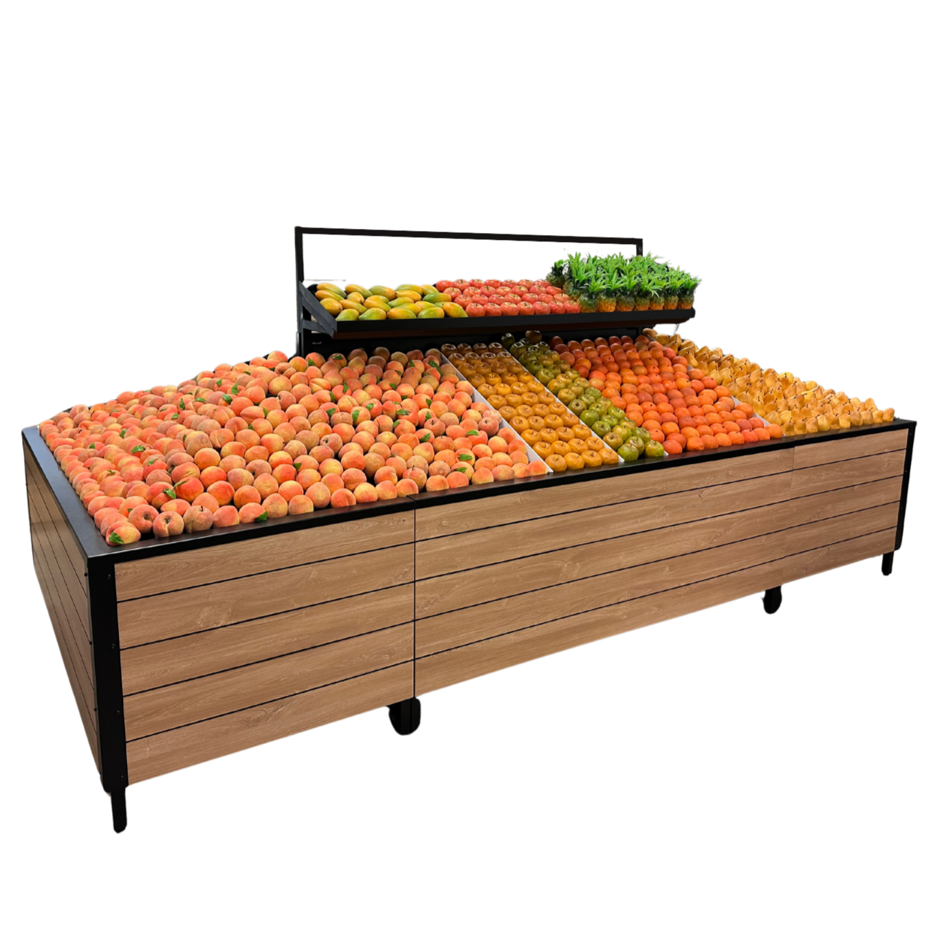 The Two-Tier Produce Lounge Display offers maximum capacity and stunning presentation for high-traffic produce departments. Its spacious dual-level design provides exceptional product visibility while maintaining a clean, modern aesthetic.